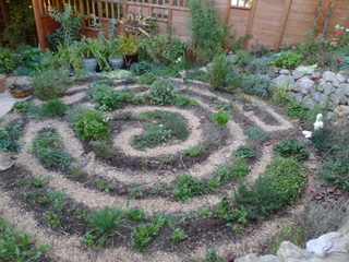 The weather here in Northern California has been wonderfully sunny and warm for the last week or so, giving me time to get the labyrinth ready for winter, take down old tomato vines, and get the beds ready for planting. For the labyrinth, I trimmed and added garlic and greens, along with new pebbles for the path.