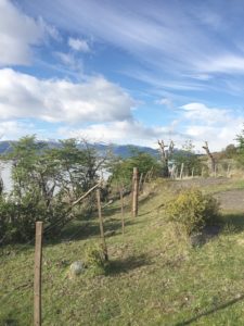 The gorse-like bush at the edge of the photo with the yellow flowers is called el calafate, and despite its thorns, its berries are picked for jam and liquor, makeup and whatever else the industrious population can think to make of them.