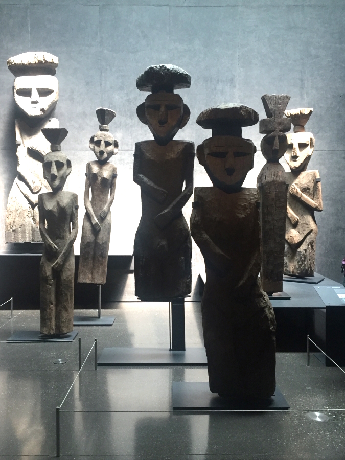 We’ve enjoyed Santiago a great deal, especially the Museo Chileno de Arte Precolombiano where we went twice. The bottom floor is called “Chile before Chile” and as you walk in, you are greeted by these grand wooden grave markers at the end of a long hallway, some lit, some in shadow: