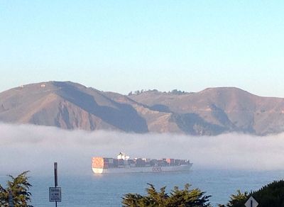 As we left the museum, the view provided its own Zorn image of a container ship heading towards the Golden Gate: