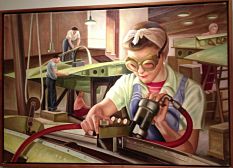 As you can see, Reindel wasn’t confined to one style. The item you saw was part of a series of depictions of women contributing to the war effort which was commissioned for Life Magazine. The Life Magazine article is here: http://www.atticpaper.com/proddetail.php?prod=1944-edna-reindell-women-at-war-article&cat=12