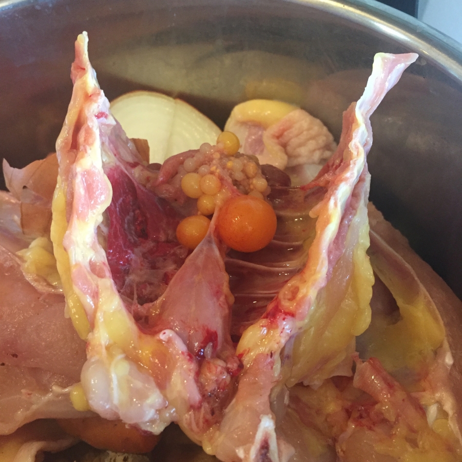 It always makes me sad to see the unused eggs, but the hens still make great soup.