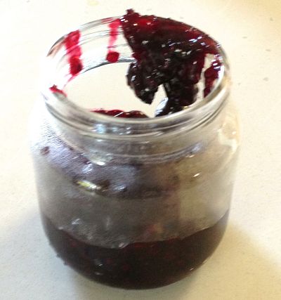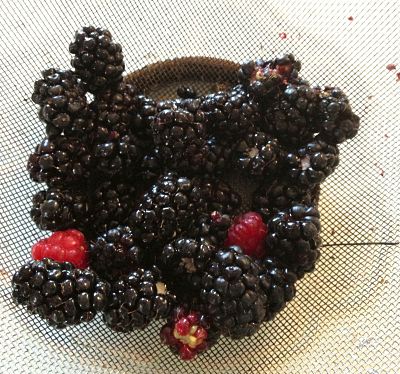 IMG_0977_optUsually making jam or jelly is a big production, bags or flats of fruit, a morning or an afternoon set aside. But one of the joys of a garden is grazing, and yesterday I picked a couple of handfuls of blackberries and a couple of raspberries, a little too much to eat for breakfast. In about 5 minutes, I made a tiny batch of blackberry jam, just enough to half fill a baby food jar.
