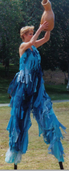 We sat on the bleachers, subdued and a little apprehensive. Finally the music started, slow and rhythmic; then eight or ten women came emerged, dancing on very, very tall stilts. They wore green and gold fringed pants that covered their legs and the stilts, so that they looked not so much like women on stilts as like some kind of long-legged, elegant creatures. From the waist up they were bare-chested. At least two of the women had had mastectomies. The long scars were like part of the costume. The women drew no attention to their breasts, present or absent; they simply and joyously inhabited their bodies. They danced in circles, slowly at first, then more and more wildly–exuberant and skillful. The small gym floor transformed into a ritual circle in praise of the living body. The noise of the protesters’ chants became part of the dance along with the red and blue strobes from the police cars flashing through the windows. Inside, we were part of a spell so strong that I have never feared physical disfiguration since–the dancers showed me that it is possible to praise the flesh whatever its form.