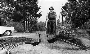 I’ve always been a huge fan of O’Connor’s peculiarly revealing, wry intelligence. She simply presents characters in perfectly chosen detail and dialog and lets the reader draw her own conclusions. She’s like no one else. Also, she kept over 100 peacocks as well as other fowl. If you’ve ever heard a peacock, you know that she was a lover of cacophony.