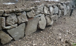wallThe wall is three and half feet tall and about thirty feet long. Apparently, people in this neighborhood just toss old concrete down the hill when they remove it. My neighbor said he has this much embedded in his hillside, too. There’s a sizable pile of leftover concrete–but I’m not planning on tossing it down the hill.