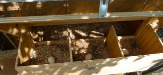 On a sad note, though, the bees have failed to thrive. I’ve been noticing their numbers diminishing, and yesterday looked in the hive. There were only a few dozen bees, and not much comb. The bee guru says this just happens sometimes. It’s disheartening. After the last bees live out their hospice days in the hive, I will clean it out and prepare it for a new swarm in the spring. And I’ll move it to a spot where they get more sun. Then perhaps they will do better. For now, just waiting for the wonderful sound a hen makes when she announces that she’s laid an egg! laid an egg! laid an egg!