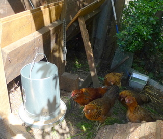 The chickens were a little spooked by the new feeder at first, but soon got used to it.