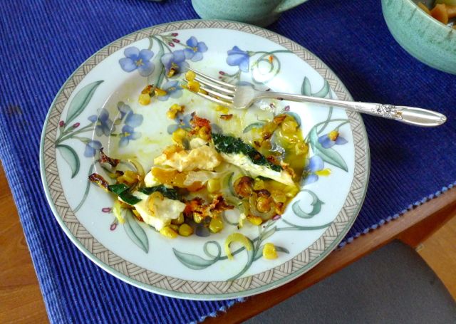 This year, I’ve been buying corn at the farmers’ market and adding it to almost everything. For example, a little fried onion, garlic, turmeric, corn and kale with an egg on top. I almost finished this before I remembered to snap a photo for you: