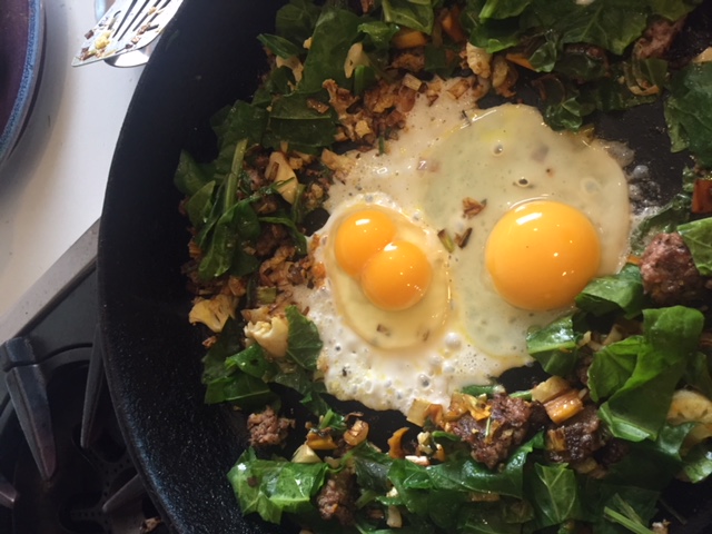 The last group of baby chicks is now starting to lay the lovely pullet eggs, small and beautiful. We cracked one yesterday, and the small egg had two small yolks. I’ve had big eggs with two yolks before, but never a small one.