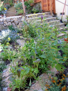 As a finishing touch, I placed a statue (a wonderful gift from a sculptor friend) near the center. In addition to gracing the labyrinth, it holds back the Blue Showers plant so that I didn’t have to completely decimate it.