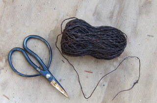 Nonetheless, it was no longer possible to walk the full labyrinth, so pruning and tying back was in order. I took my wonderful Japanese scissors and some brown garden twine, and set to work.