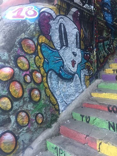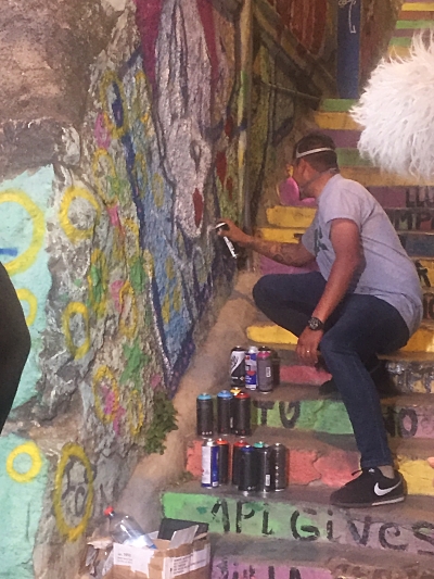 One evening in Valparaiso, we saw one of the street artists at work. I imagine his work was unauthorized, as he was doing it at night. He had a big power spray paint gun, and wore a mask.