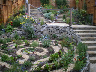 The idea for me was that it would work a little pause into my day—I tend to move very quickly. I planted the herbs I use most (parsley, oregano, cilantro, sage, chives) in the outer row, so I wouldn’t have to walk the whole labyrinth if I just wanted a sprig of one of them. I bought seedlings at Annie’s Annuals, the best retail nursery I’ve ever seen.