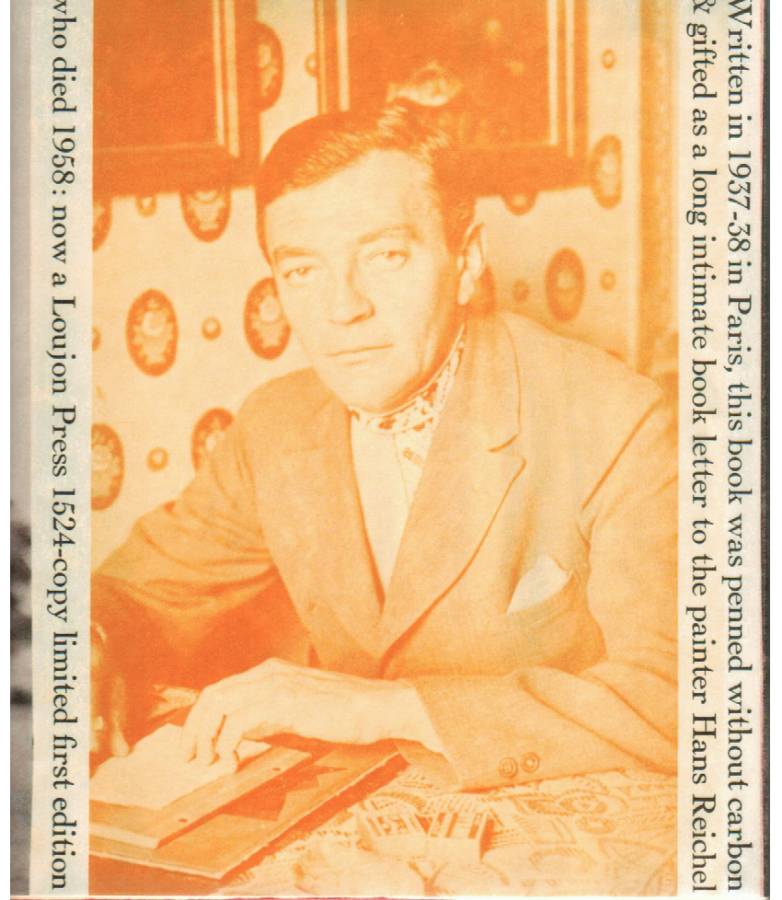 Another Loujon Press artifact is a letterpress edition of diary entries by Henry Miller, mostly about an artist named Hans Reichel, in Paris before the second world war (1937-1938). It’s a beautiful multicolored letterpress edition, with a final note by Henry Miller. The end of the note reads: