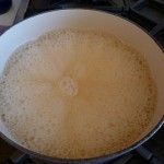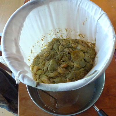 These little green ovals aren’t wonderful raw, and as you cook them up, they look like the most unappetizing murky greenish-brown glop. The strained liquid doesn’t look much better.
