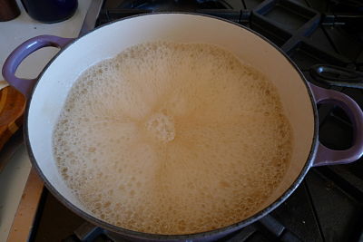 But after it boils up over 200 degrees, it transforms. In the bubble and seethe, it changes to a clear pinkish gold liquid.