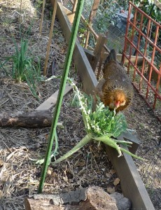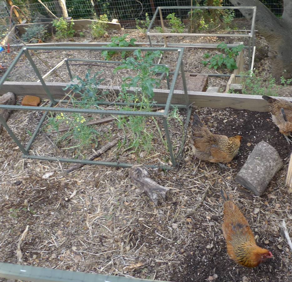 Earlier that day (here is the cluck part) my wonderful friend and expert builder, Jeannie, finished creating a set of plant protection boxes for my garden. Now that it’s planting season, I’d like to let the chickens out to weed and fertilize, but you may remember what they do to anything that grows.