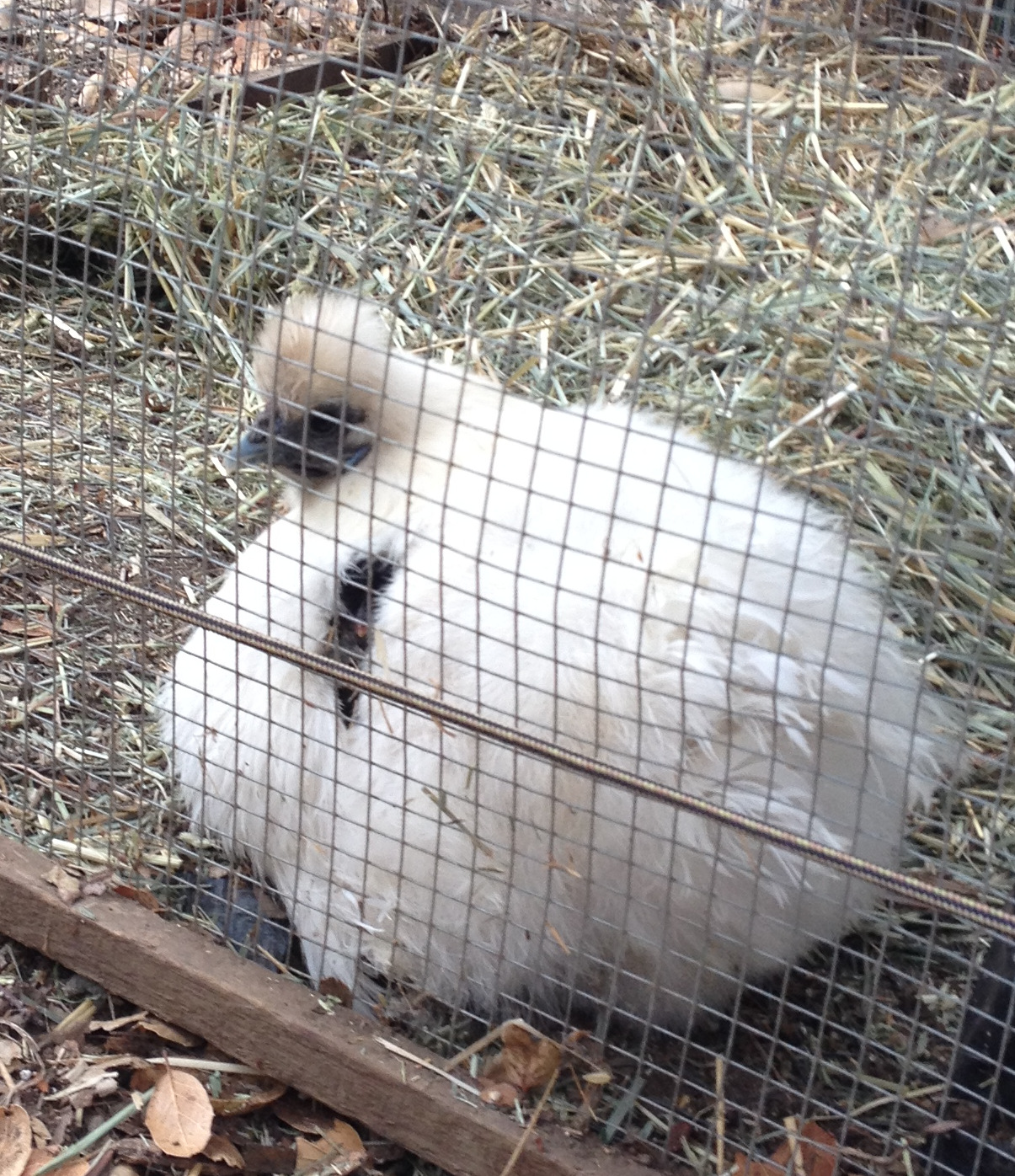 But silkies are notoriously wonderful mothers.  My silkie hen got broody almost a month ago, and has just hatched seven chicks.  Several are from my eggs, and several from a friend who has fertile eggs.  The silkie sat on them in the hen house for a couple of weeks, and then one night I moved her and the eggs to the cage I have set up for chicks.  It would have been too hard for her to manage them with all the big hens around, and they need different food.