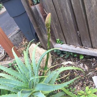 It’s looking a bit trashed at the moment, but I made a discovery in the process–not a giant asparagus, but a flowering of aloe:IMG_3008