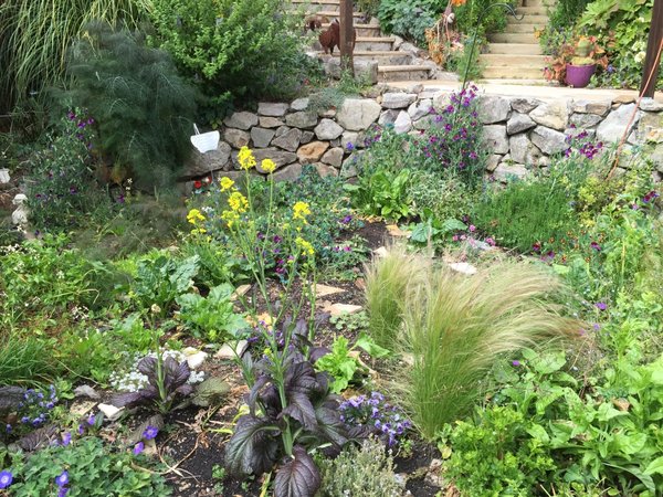 Although I have turned off the irrigation because of the drought, I have been watering the garden with dishwater from the sink–several gallons a day. In response, things are still looking good: